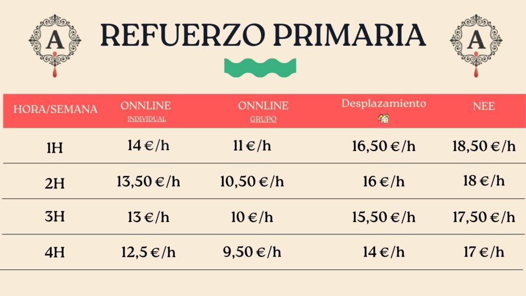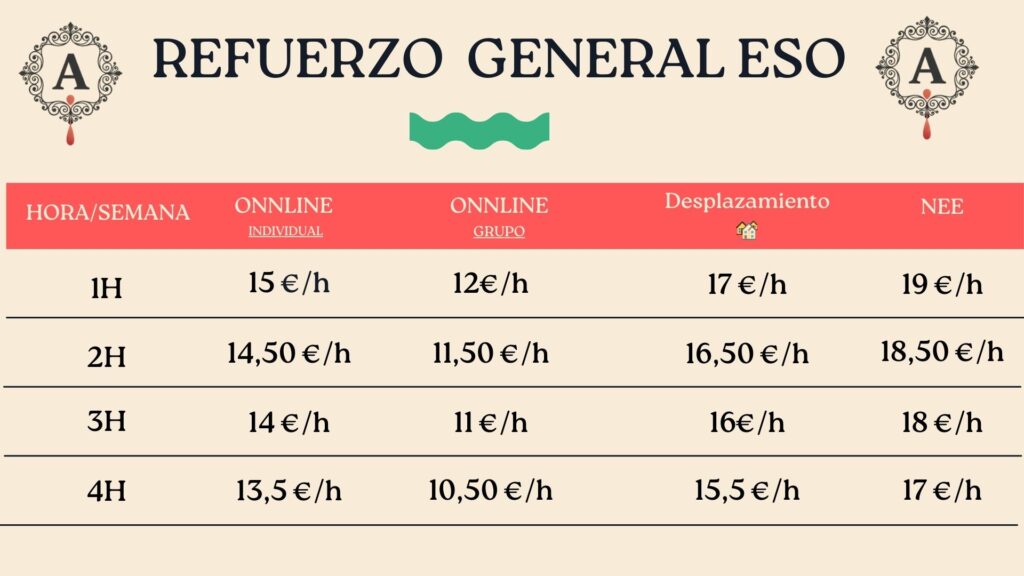 Nuestros precios varían en función del nivel, la modalidad y la frecuencia de las clases. No cobramos únicamente por una hora de clase, sino por un acompañamiento educativo estructurado, con profesores especializados y seguimiento continuo del alumno.